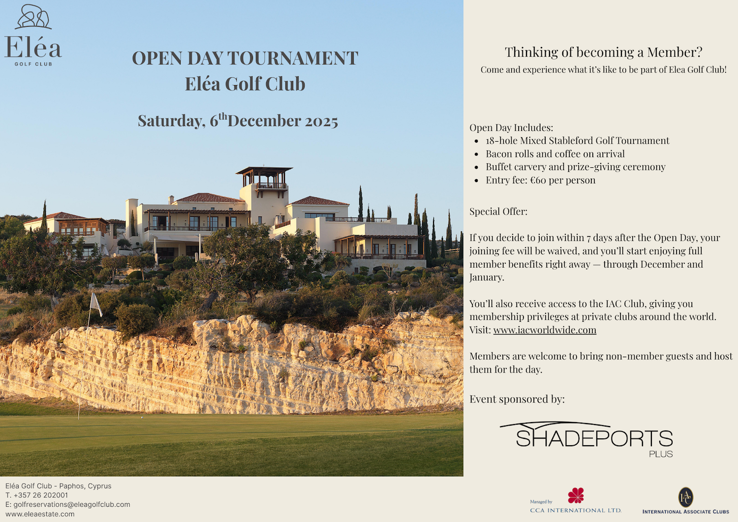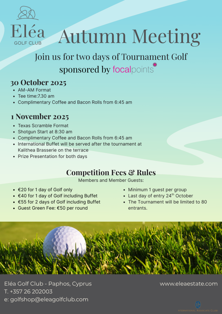 golfreservations@eleagolfclub.com or call +357 2620 2002.